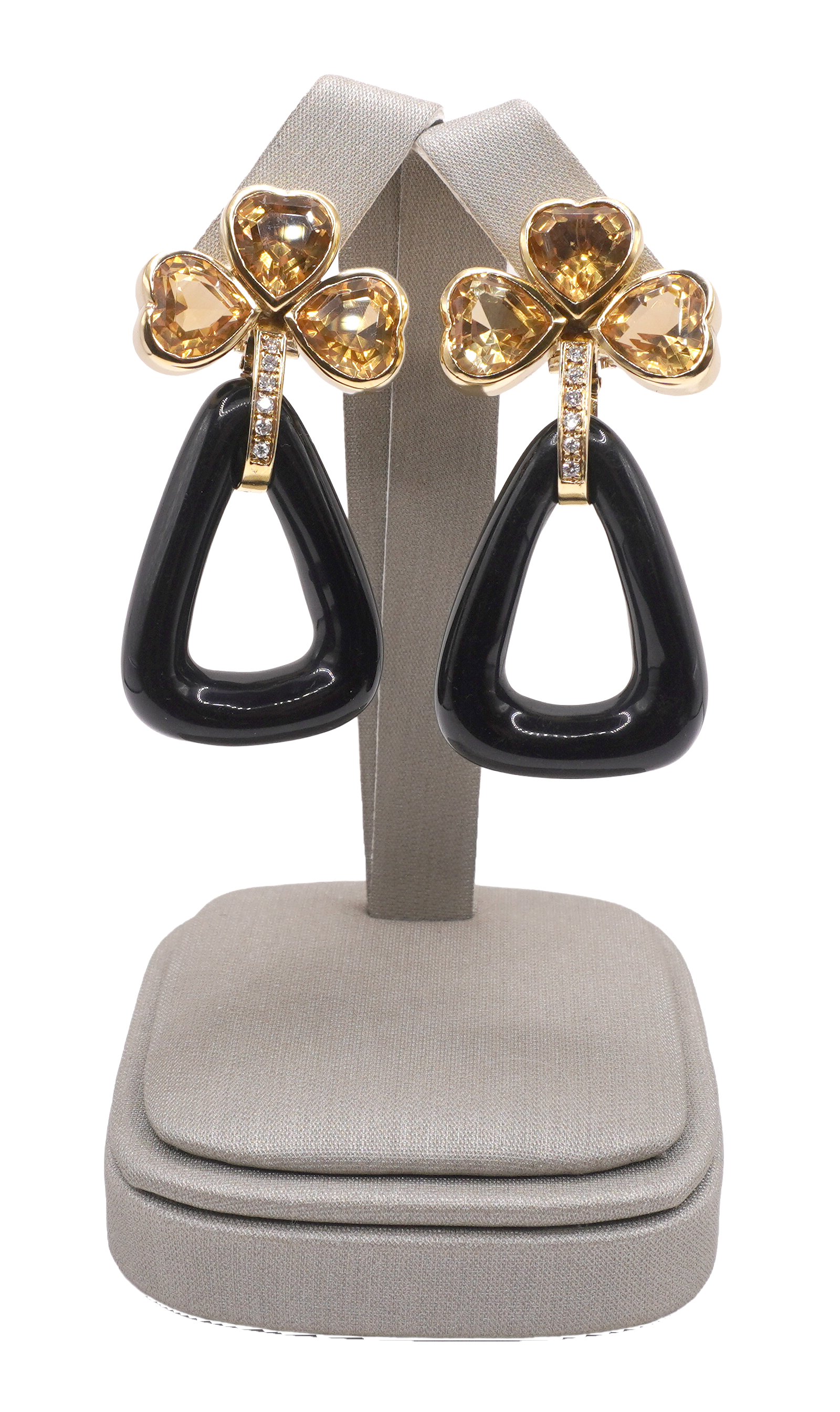 Citrine Clover Diamond and Onyx Doorknocker Earrings- 18k Yellow Gold Lumina Gem Hampstead, NC