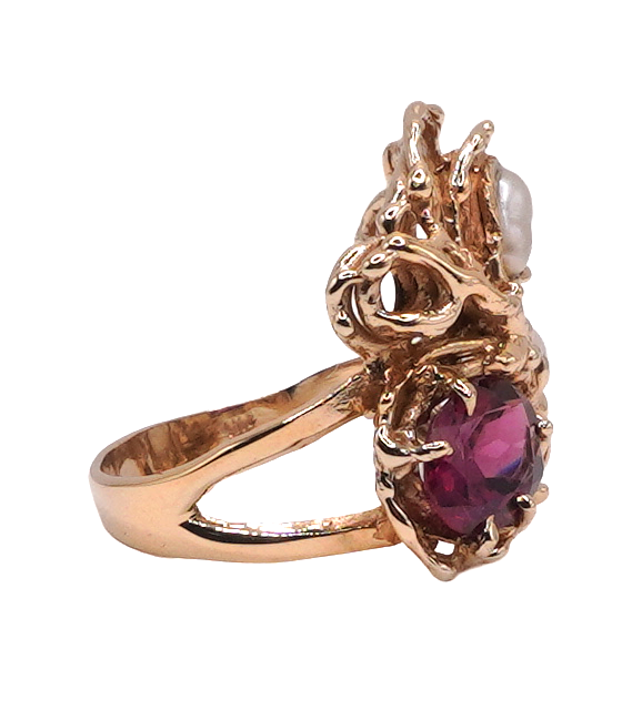 2ct Tourmaline and Pearl Ring- 14k Yellow Gold Image 2 Lumina Gem Hampstead, NC