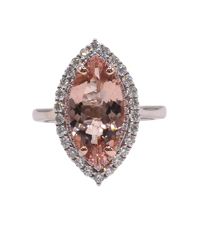 3.42ct Marquise Morganite with .17ctw Pink Diamonds and .49ctw Diamond Ring- 14k White Gold Lumina Gem Hampstead, NC
