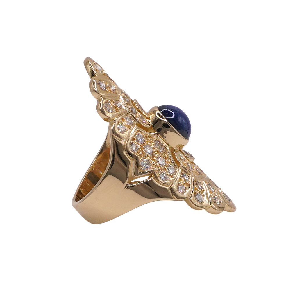 Approximately 1.25ctw Diamond and Cabochon Sapphire Ring- 18k Yellow Gold Lumina Gem Wilmington, NC