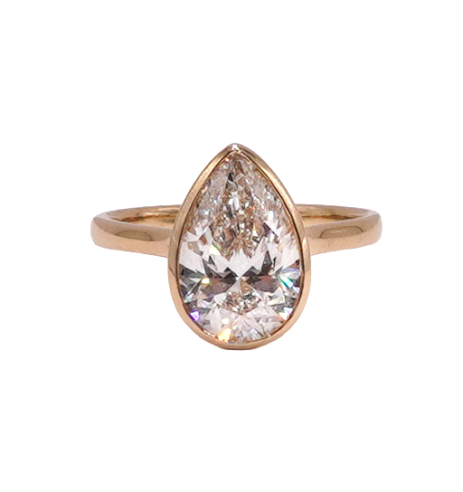 3.02ct Pear Shaped Lab Grown Diamond Bezel Set Ring- 14k Yellow Gold