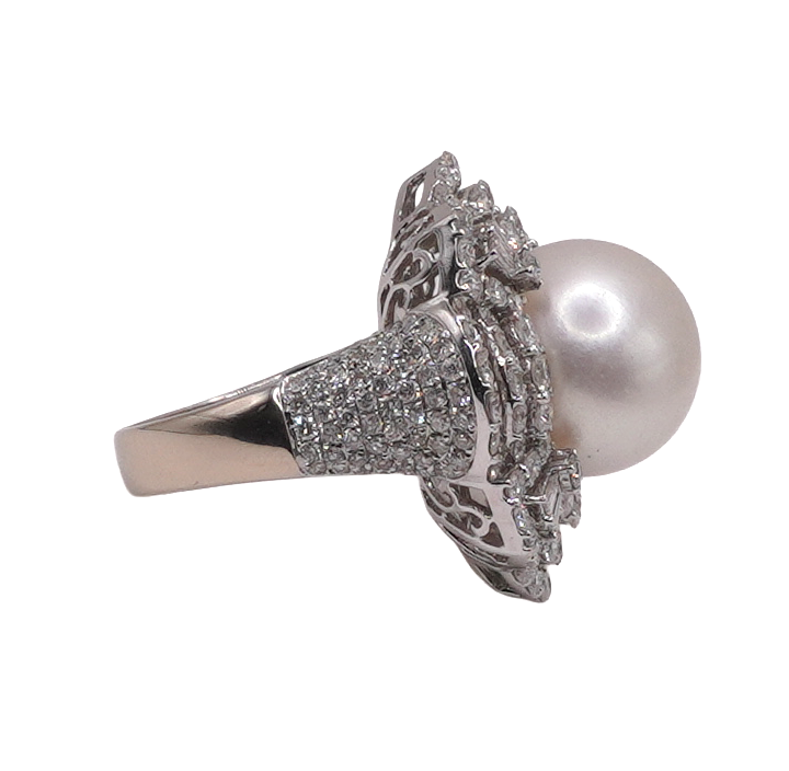 13.7 South Sea Pearl and Diamond Ring- 18k White Gold