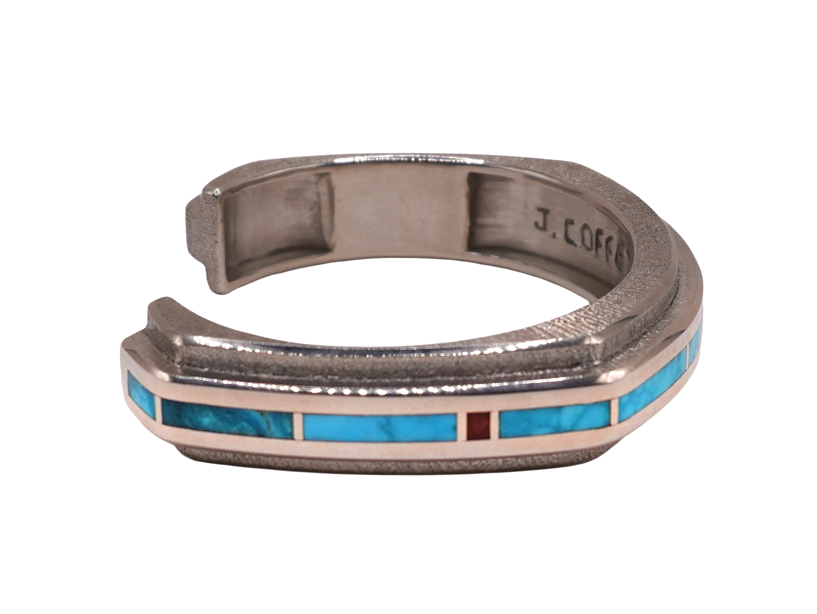 4. John Coffey Sterling Silver Cuff with Red Coral and Natural Royston Turquoise