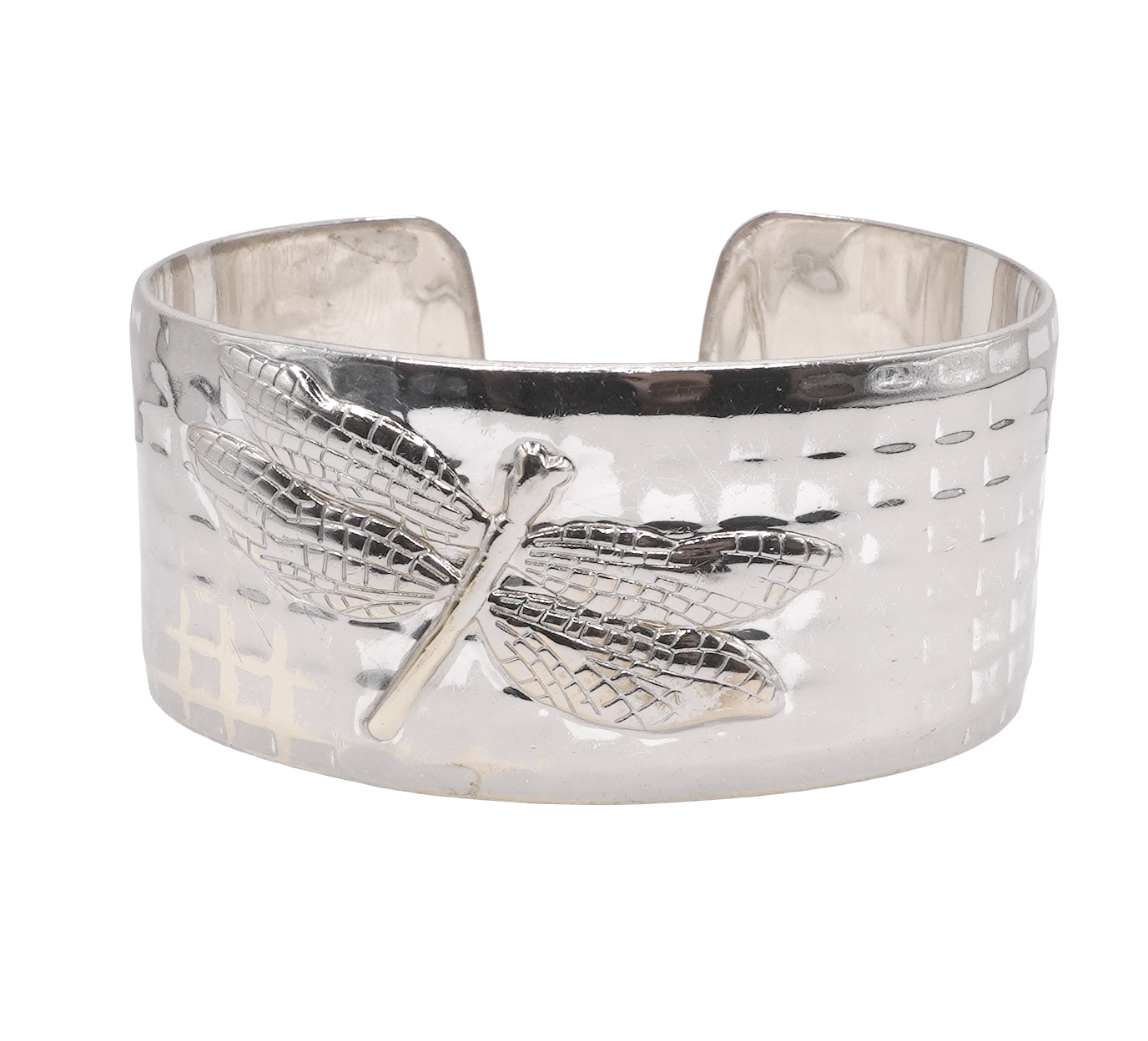 Vintage Hammered Sterling Silver Dragonfly Cuff- 18k Plated Yellow Gold Lumina Gem Hampstead, NC