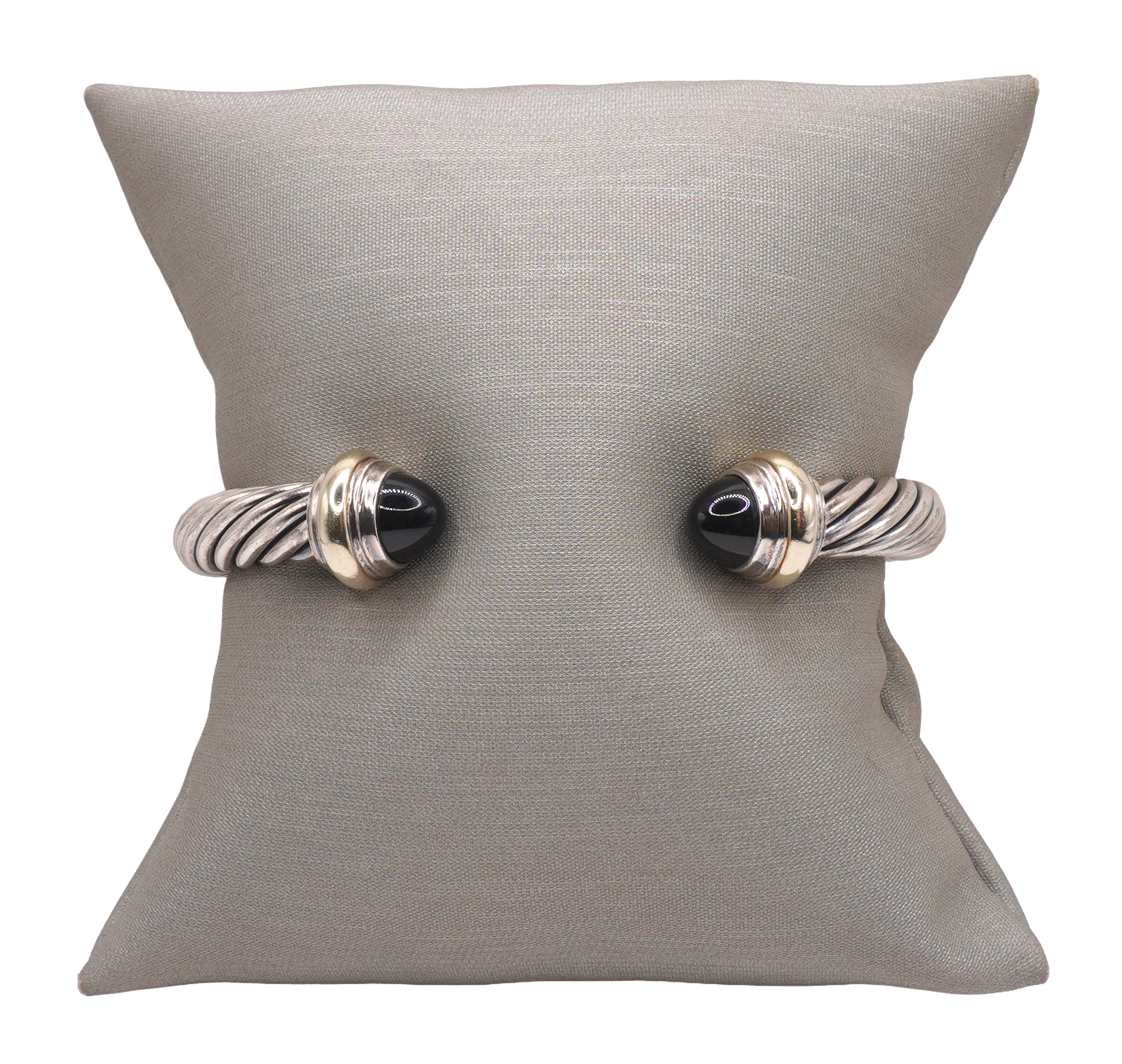 David Yurman Sterling Silver Cable Cuff with Onyx and 14k Yellow Gold End Caps Lumina Gem Hampstead, NC